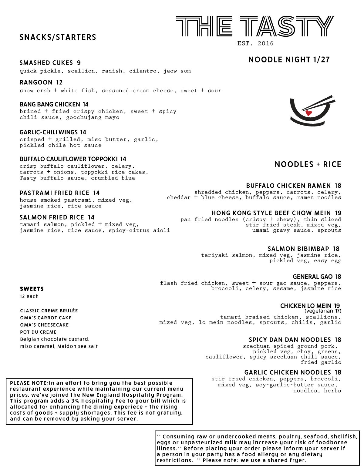 *with the exception of Tuesdays, which is ‘Noodle Night’